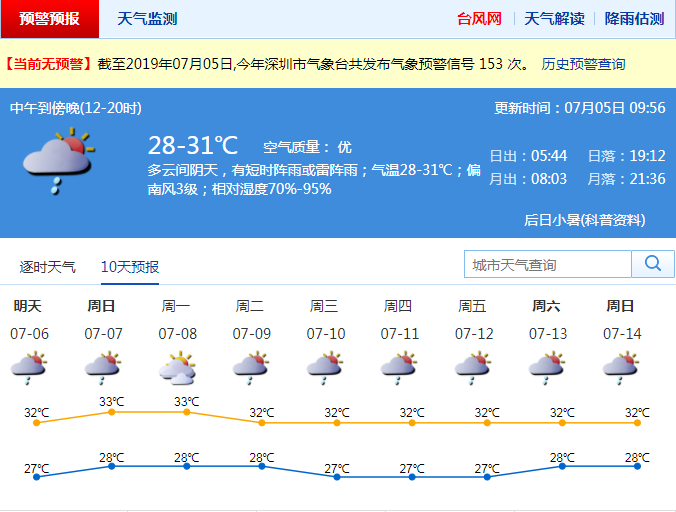 深圳新聞網(wǎng)2019年7月5日訊 第4號臺(tái)風(fēng)“木恩”(熱帶風(fēng)暴級)已經(jīng)于4日早上登陸越南北部沿海,對深圳影響減弱。據(jù)深圳市氣象局消息,今日深圳多云間陰天,有短時(shí)陣雨或雷陣雨;氣溫28-31℃;