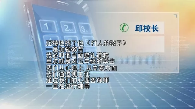隨后記者前往了小詹所在的小學。邱校長表示打人者彬彬本身是一個自控力較弱的學生,他們此前也有進行過多次批評教育,而這次事發(fā)在非上課時間的校外,他們也有立即介入對事情進行了解,并且協調雙方進行協商,在小詹出現應激反應后,他們也立馬聯系了心理醫(yī)生進行輔導。