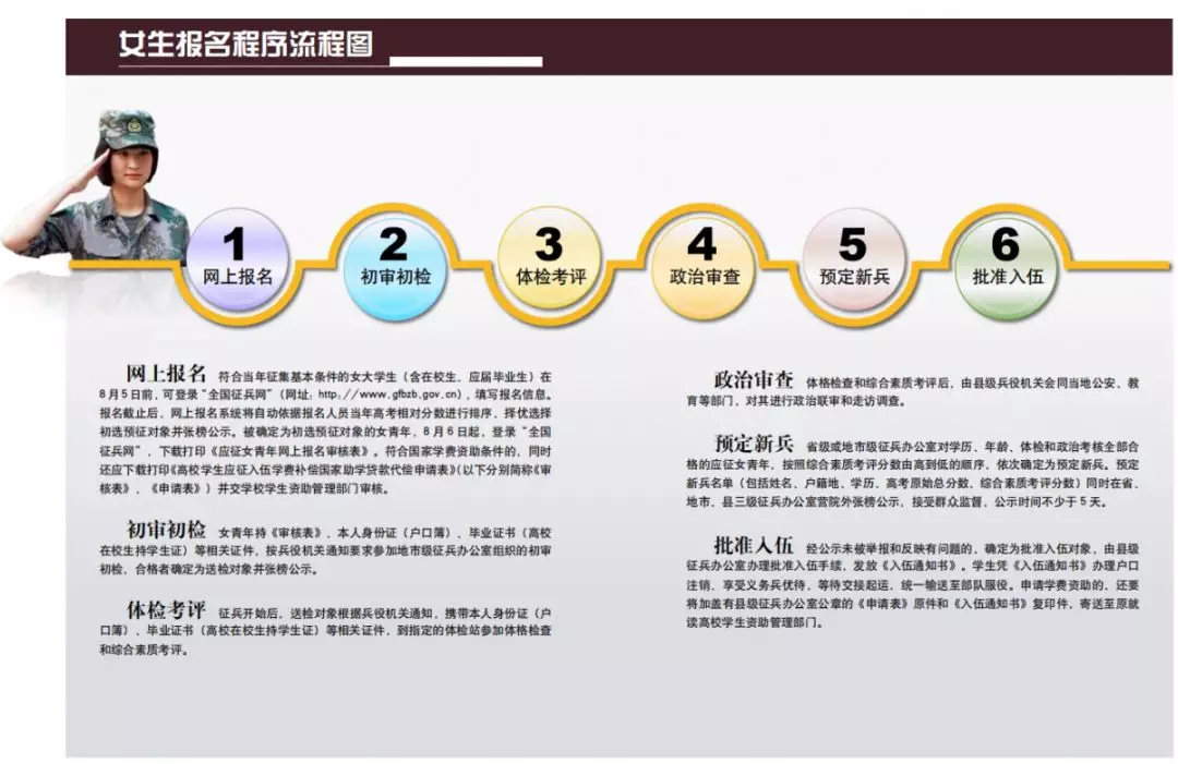 全國征兵(女兵)應(yīng)征報名時間:截止至2019年8月5日18時截止。