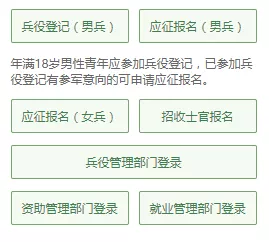 小編說:有些小伙伴看到這么多的菜單就有些懵了,其實不用緊張,如果你是第一次來的男生,直接從“兵役登記(男兵)”進(jìn)入頁面就可以了;否則就從“應(yīng)征報名(男兵)”進(jìn)入頁面;如果想報名招收士官,就從“招收士官報名”進(jìn)入頁面,不過,今年的招收士官貌似還沒開始