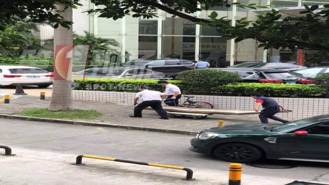 據(jù)目擊者介紹,在羅湖帝豪金融大廈附近,一根建筑鋼筋突然從高空墜落,砸在了路邊,連水泥地面都被鋼筋戳穿一個洞。