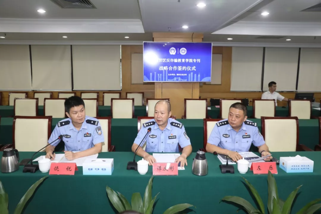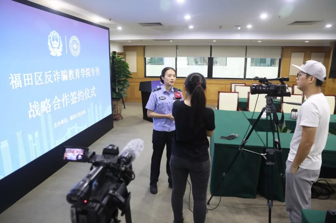 活動(dòng)現(xiàn)場(chǎng),福田分局分別與福田區(qū)委政法委、蓮花街道辦、北大深圳醫(yī)院、深圳外國(guó)語(yǔ)學(xué)校、中國(guó)郵政儲(chǔ)蓄銀行、聯(lián)想有限公司(深圳)、平安大廈物業(yè)、馬成時(shí)代廣場(chǎng)、卓越世紀(jì)廣場(chǎng)、山姆會(huì)員店、梅林農(nóng)批市場(chǎng)、順豐快遞共12家單位和企業(yè)簽訂了《福田反詐騙教育學(xué)院??瘧?zhàn)略合作協(xié)議》。