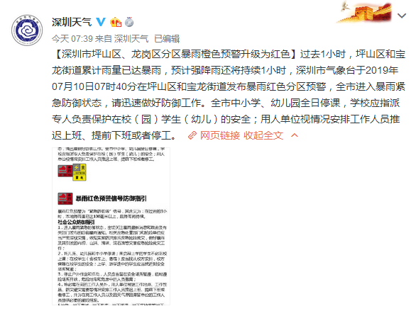 深圳氣象局官方微博7月10日7時39分發(fā)布信息