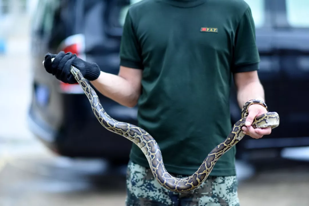 2米蟒蛇下山到居民區(qū)“吃雞”