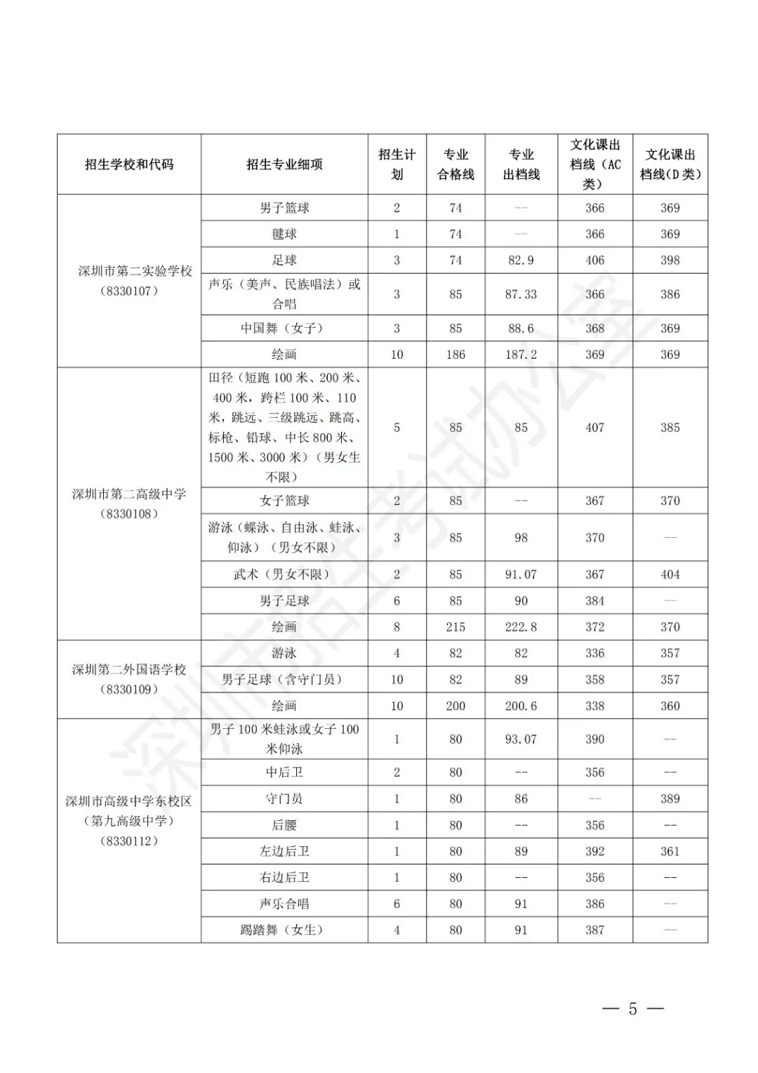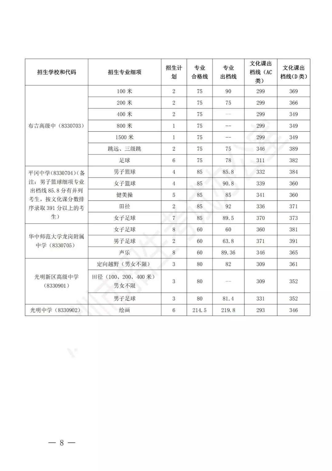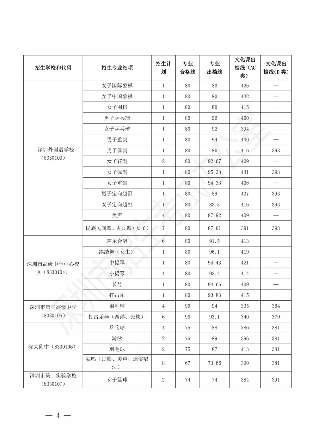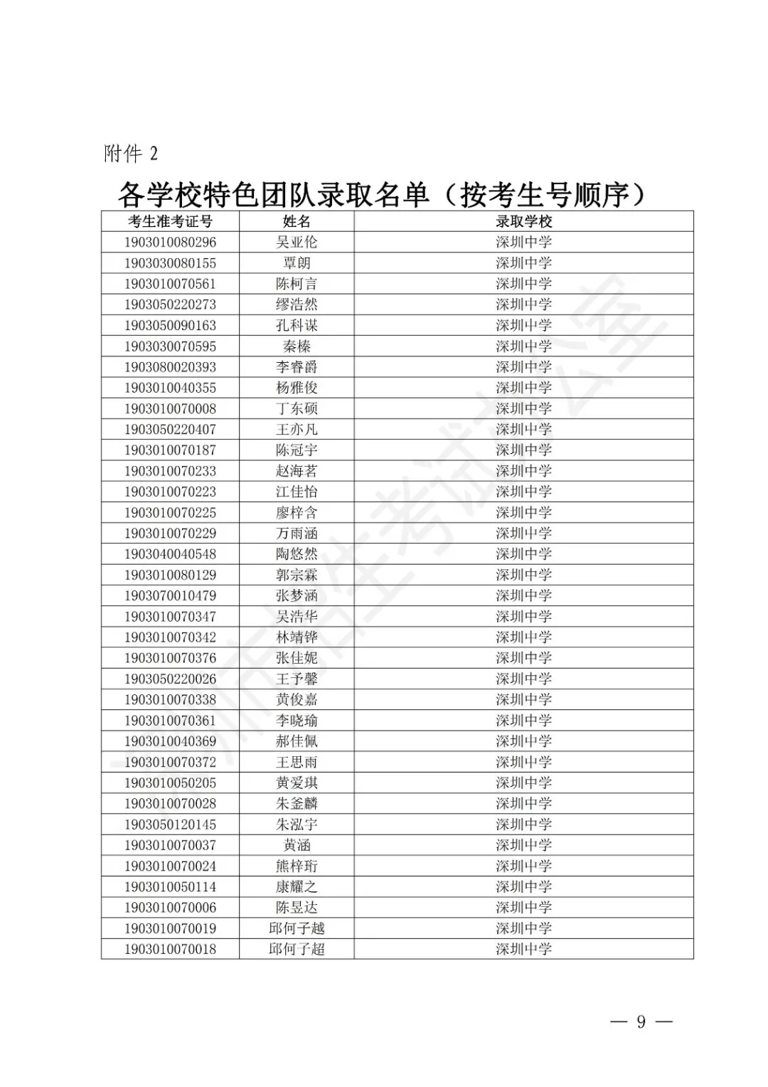 深圳市2019年公辦高中特色團隊錄取標(biāo)準(zhǔn)