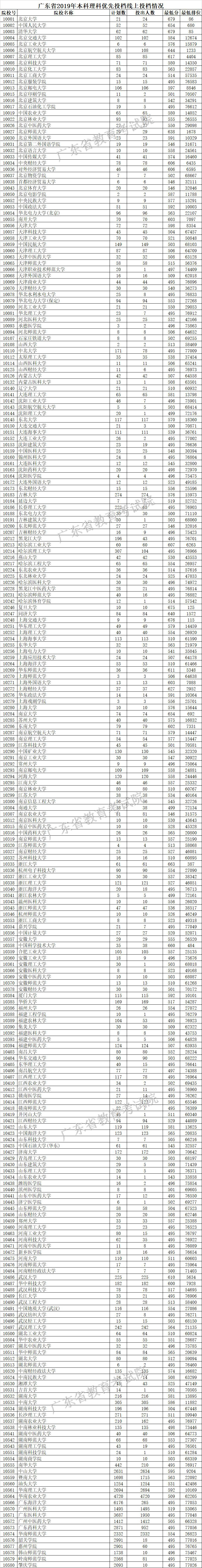 廣東省2019年本科理科優(yōu)先投檔線(xiàn)上投檔情況