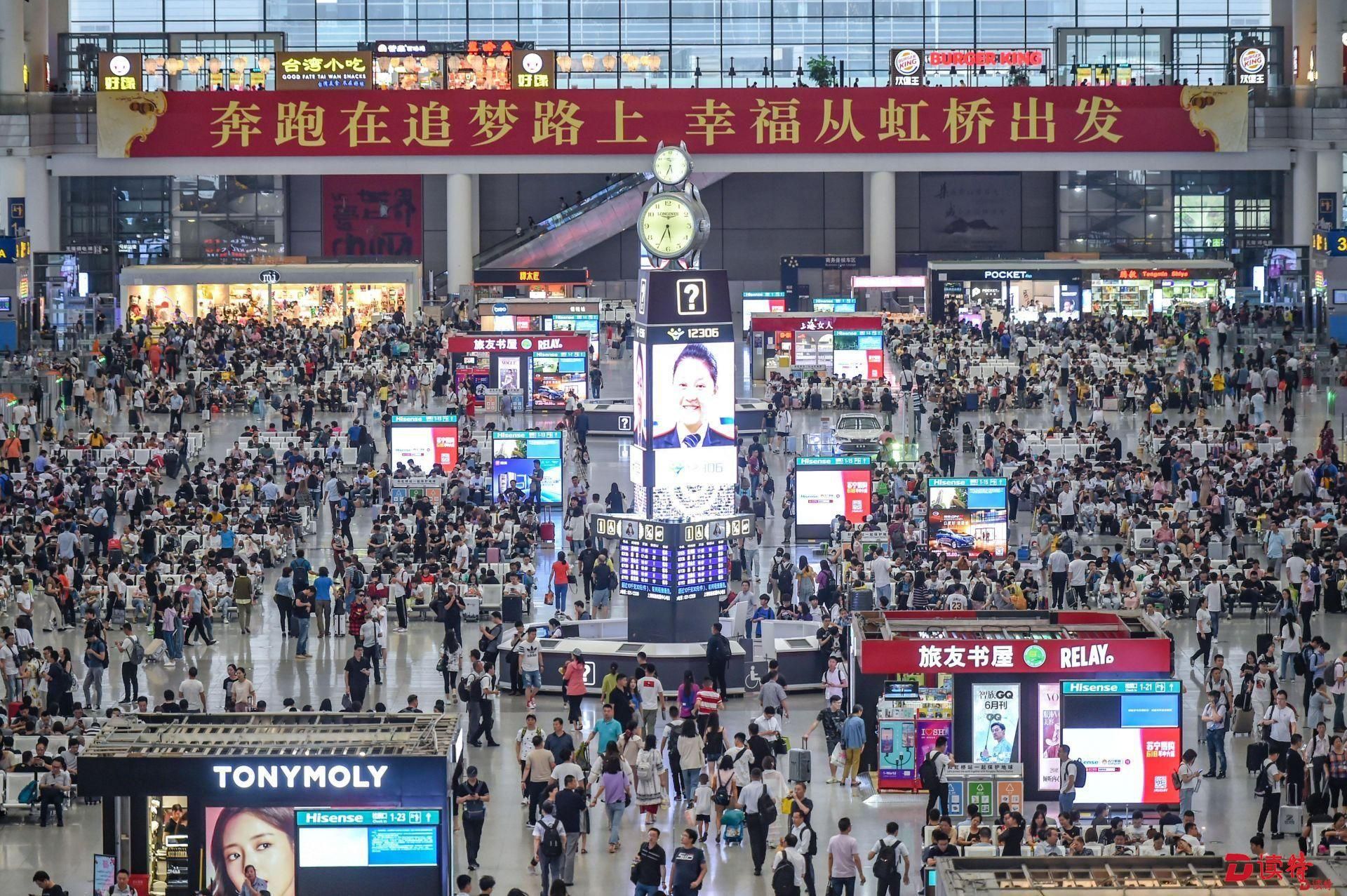 虹橋站是京滬、滬寧、滬杭三線高鐵的交會點,日均到發(fā)旅客40萬人次。