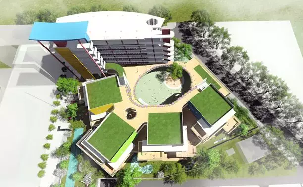 項(xiàng)目打破傳統(tǒng)整齊排列的布局方式,打造出4個(gè)與邊界呼應(yīng)的靈活體塊,在保證幼兒園首層活動(dòng)空間完整最大化的同時(shí),將新舊校舍結(jié)合,打造一個(gè)聯(lián)通式共享庭院。新建校舍為每一個(gè)班級(jí)都提供了專屬的室內(nèi)外無(wú)邊界活動(dòng)空間。除首層班級(jí)與室外活動(dòng)空間直接連通以外,二、三層班級(jí)外設(shè)有錯(cuò)落的活動(dòng)露臺(tái)及挑檐,實(shí)現(xiàn)每層均可嬉戲、游樂(lè)、探索的布局。