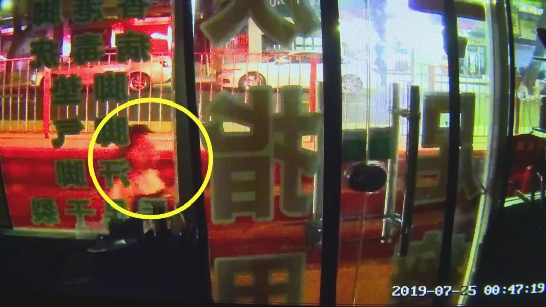 王女士店里的監(jiān)控顯示,24日晚12點(diǎn)45分左右一名女子牽著狗走到王女士店門(mén)前,用手將狗屎涂到了門(mén)上。