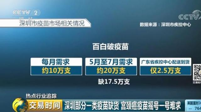 據(jù)深圳市疾控中心介紹,深圳市百白破疫苗每月需求約10萬支,5月至今需求約20萬支,廣東省疾控中心配送到貨僅2.5萬支,缺口巨大。