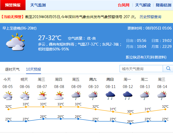 見圳客戶端·深圳新聞網(wǎng)2019年8月5日訊 上周末的暴雨為深圳帶來了一絲清涼,有市民表示,下雨涼快了,空調(diào)都不用開就能睡了。然而,清涼的日子總是短暫的,炎熱的天氣又將到來。