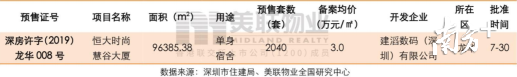 同期內新增1個預售項目——恒大時尚慧谷,該地塊用途為新型產業(yè)用地,此次獲批房屋用途為工業(yè)配套單身宿舍2040套(見圖1),去年2月份獲批產業(yè)研發(fā)用房936套。