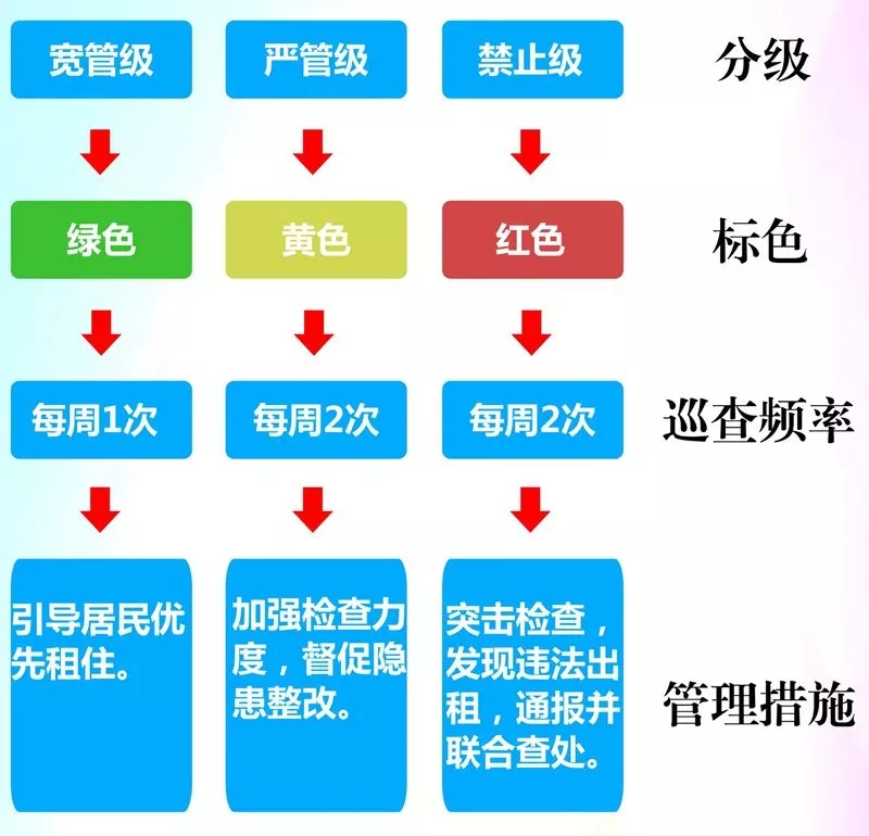 各街道在本轄區(qū)內全面落實出租屋分類分級管理,區(qū)工作領導小組在各街道完成后開展全面驗收。