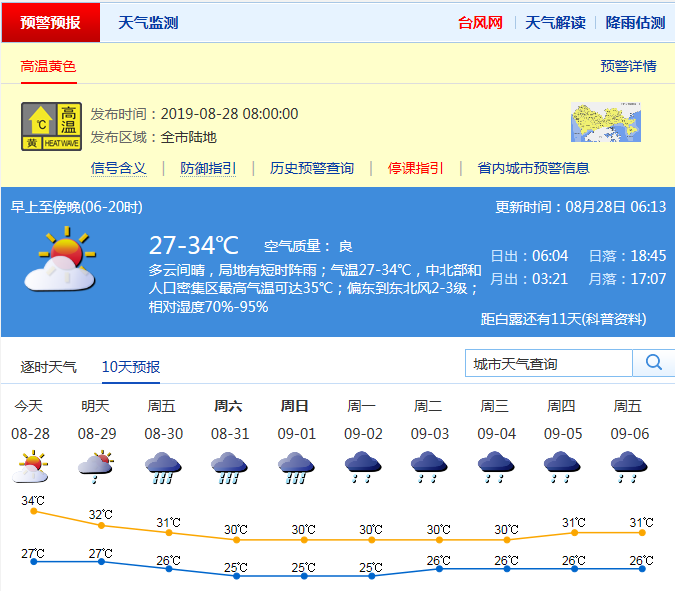 據(jù)市氣象局預計,我市28-29日炎熱加劇,午后局部有熱雷雨,最高氣溫34-36℃;30日至9月1日有一次大雨局部暴雨降雨過程,最大陣風6-7級,悶熱緩解。市氣象局提醒市民,臺風“楊柳”進入南海后,其路徑強度預報尚有不確定性,請市民關注市氣象臺發(fā)布的最新預報預警信息。