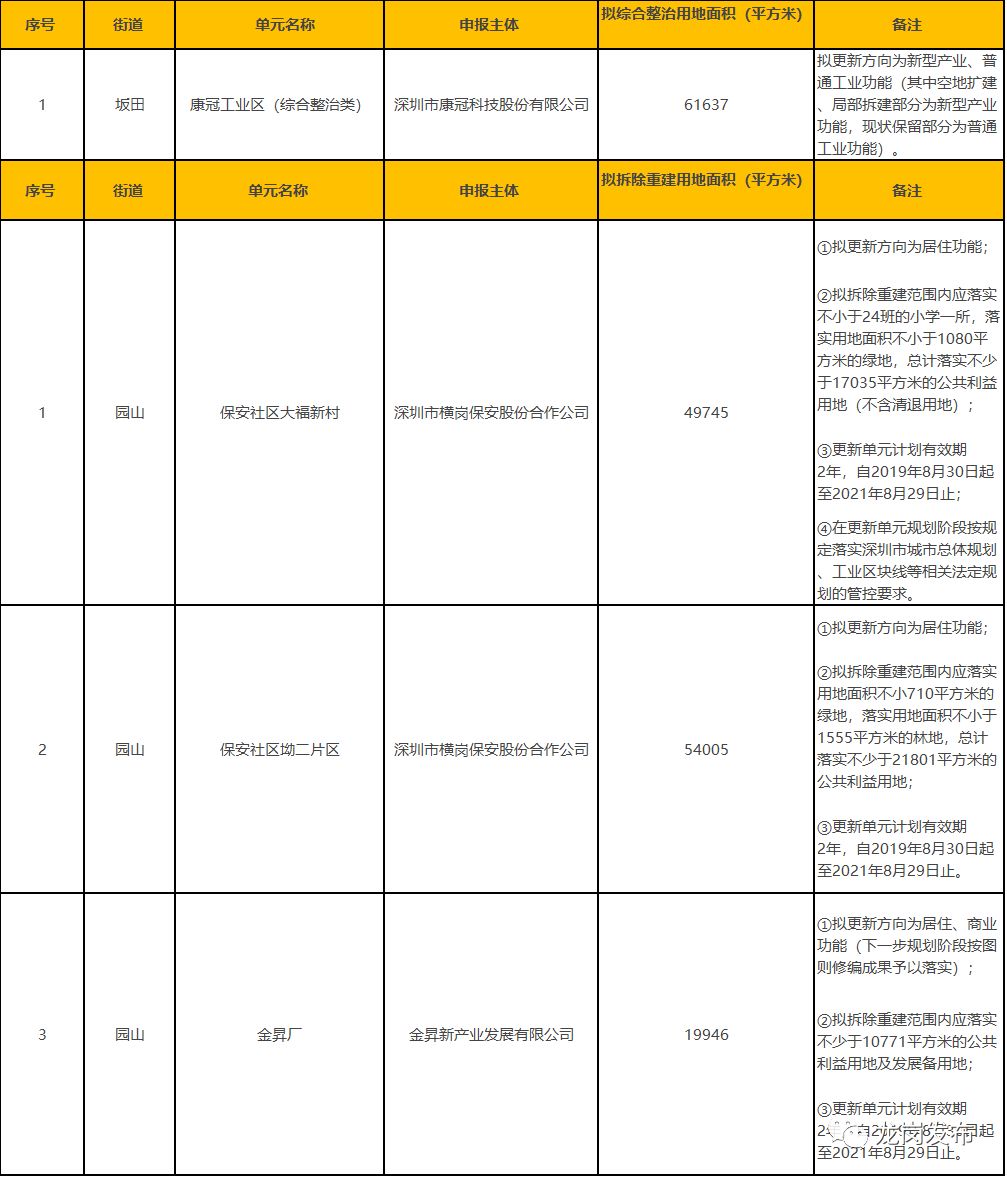 1、本表所列的城市更新單元須按照城市更新相關(guān)政策完成城市更新單元規(guī)劃編制及項目實施主體確認(rèn)等工作后方可實施開發(fā)建設(shè)。