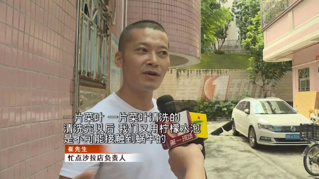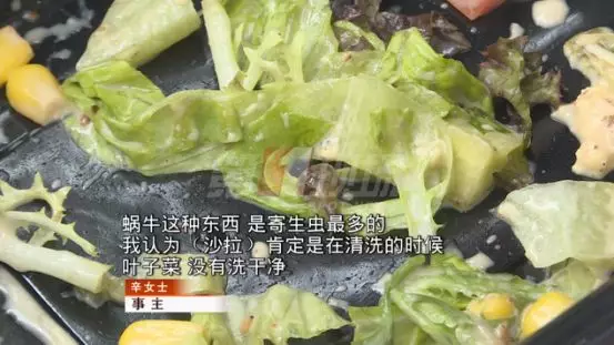 今天上午,辛女士也向記者展示了那份吃剩的沙拉,蝸牛依舊在蔬菜里頭蠕動。辛女士認為,一定是蔬菜沒有徹底清洗干凈,才會出現(xiàn)這樣的情況。