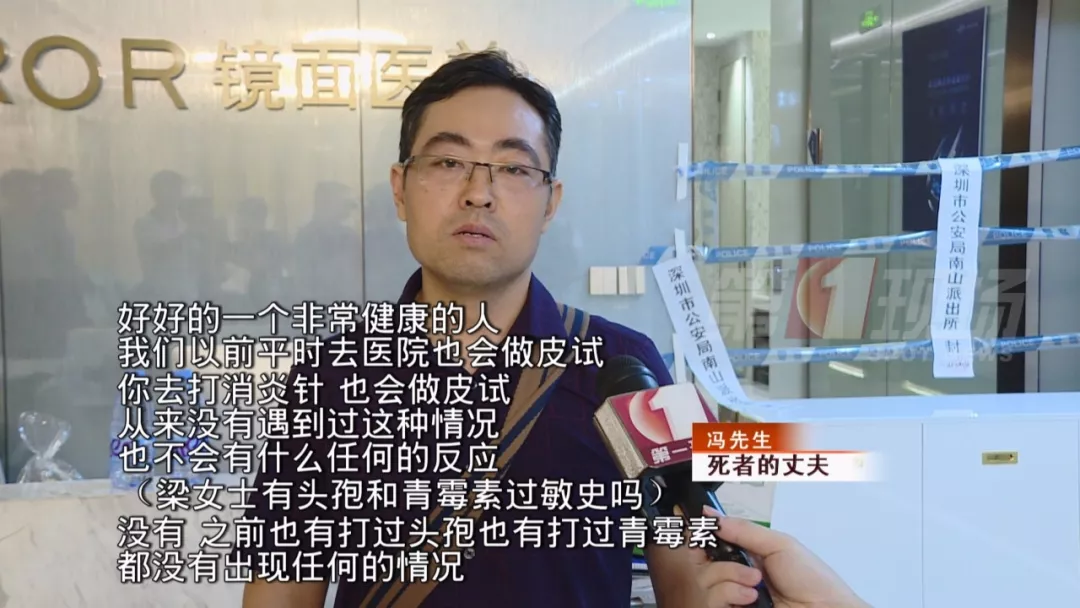 馮先生說(shuō),根據(jù)與梁女士同行的朋友事后描述,梁女士先是到別的醫(yī)院做了體檢,檢查符合手術(shù)條件,又再次回到了醫(yī)美門診部。隨后,醫(yī)護(hù)人員就給梁女士做了皮試和打吊針。下午5點(diǎn)左右,梁女士出現(xiàn)了呼吸困難,四肢發(fā)冷等癥狀。