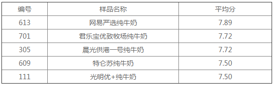 最終,經(jīng)綜合評價,此次中外常溫純牛奶比較試驗(yàn)中,共6款常溫純牛奶獲五星評價,五款國產(chǎn):蒙牛特侖蘇、伊利金典、君樂寶優(yōu)質(zhì)牧場、晨光供港壹號和網(wǎng)易嚴(yán)選純牛奶;一款進(jìn)口:紐仕蘭牧場全脂牛奶。