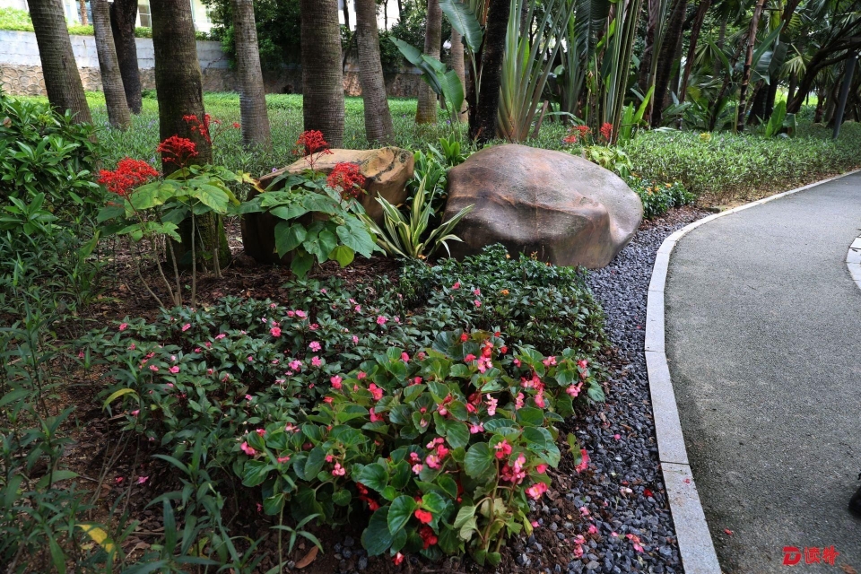 除了花帶,市城市管理和綜合執(zhí)法局還在深南大道行人過馬路的地方新打造了10個(gè)花園路口,每個(gè)小花園5-10平方米,結(jié)合原有路口的景觀設(shè)計(jì),融入海綿生態(tài)理念,增加蜜源、觀花和色葉植物,組合成花境,讓在路口等紅綠燈的市民能欣賞到深圳的自然之美。