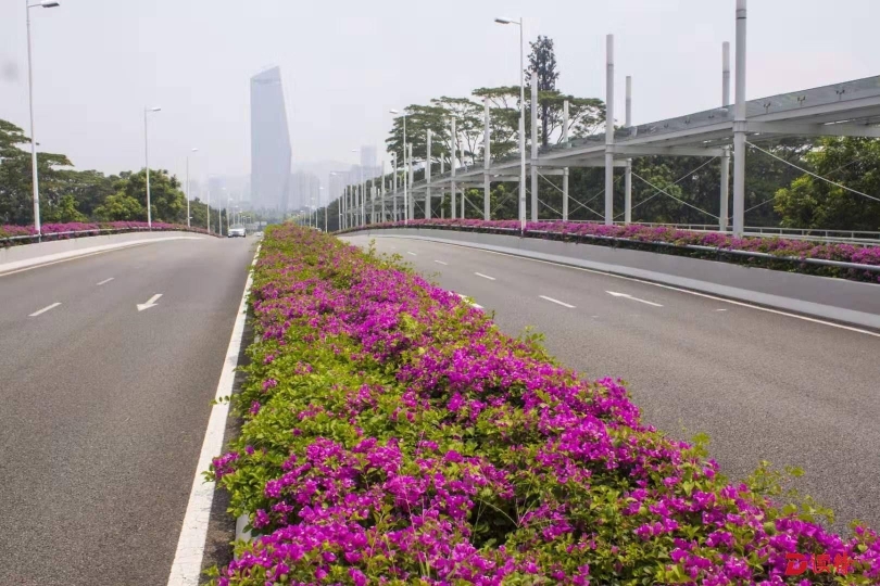 濱河路定位為時(shí)尚簡(jiǎn)約的熱帶園林景觀,將在立交橋節(jié)點(diǎn),種植多年的觀花灌木。
