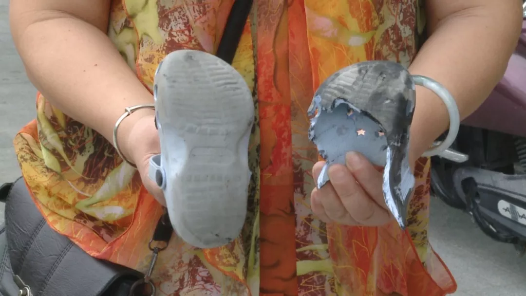 一位過(guò)路的市民見(jiàn)狀,按下了電梯緊急停止鍵,李女士這才慢慢幫助兒子脫困。孩子的洞洞鞋,前半截在電梯空隙里被絞斷,只剩下后半截,萬(wàn)幸的是,小孩沒(méi)有受傷。