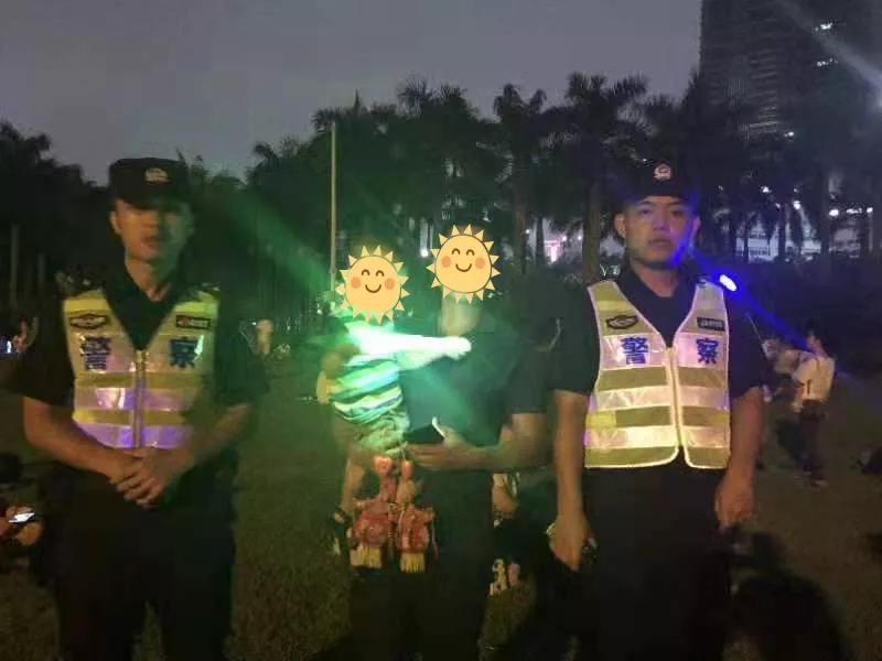 中秋夜21時許,深圳市公安局福田分局機(jī)動訓(xùn)練大隊四中隊隊員黃俊豪、施裕楓在蓮花山巡邏時,發(fā)現(xiàn)一名兩歲左右的幼童和父母走散了在哭著找媽媽,因小孩年齡太小無法獲取父母的聯(lián)系方式,兩名隊員便一直守護(hù)著孩子并在附近尋找其父母,直到找到其父親后送還小孩。