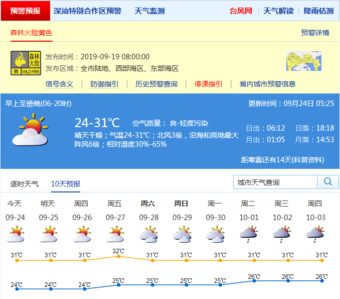 見圳客戶端·深圳新聞網(wǎng)2019年9月24日訊 據(jù)中央氣象臺消息,本周一至周五全國大部地區(qū)的天氣都很平穩(wěn),28號開始冷空氣才會陸續(xù)來報到,難道深圳也要隨之入秋了嗎?