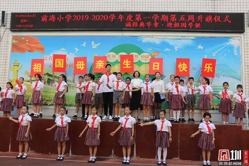 見圳客戶端、深圳新聞網(wǎng)2019年9月30日訊(見圳客戶端、深圳新聞網(wǎng)記者 陳彬 通訊員 羅其潔 潘志高)為慶祝中華人民共和國(guó)成立70周年,加強(qiáng)愛國(guó)主義教育,踐行社會(huì)主義核心價(jià)值觀,前海小學(xué)通過舉行愛國(guó)教育三部曲,祝愿?jìng)ゴ蟮淖鎳?guó)繁榮昌盛。