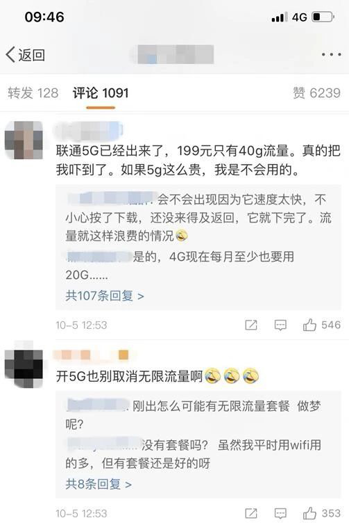 5G開(kāi)啟預(yù)約后,網(wǎng)友也議論紛紛。有網(wǎng)友稱:聽(tīng)說(shuō)聯(lián)通5G已經(jīng)出來(lái)了,199元只有40GB流量,真的把我嚇到了,如果5G這么貴,我是不會(huì)用的。