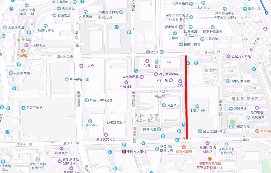 因地鐵14號線清水河站工程施工需要,2019年10月29日至2020年4月26日共180天,封閉清水河五路(清水河一路至清水河二路段)進(jìn)行施工。原經(jīng)此路段通行的車輛,可改沿清水河四路或周邊其它道路通行。2019年10月29日至2020年4月26日共180天,清水河五路(清水河二路至環(huán)倉路段)由南北雙向通行調(diào)整為由南向北單向通行。2019年10月29日至2020年4月26日共180天,清水河二路(深圳物流集團(tuán)有限公司內(nèi)部通道至清水河五路段)由東西雙向通行調(diào)整為由西向東單向通行。2019年10月29日至2020年4月26日共180天,環(huán)倉路(清水河五路至深圳物流集團(tuán)有限公司內(nèi)部通道段)由東西雙向通行調(diào)整為由東向西單向通行。