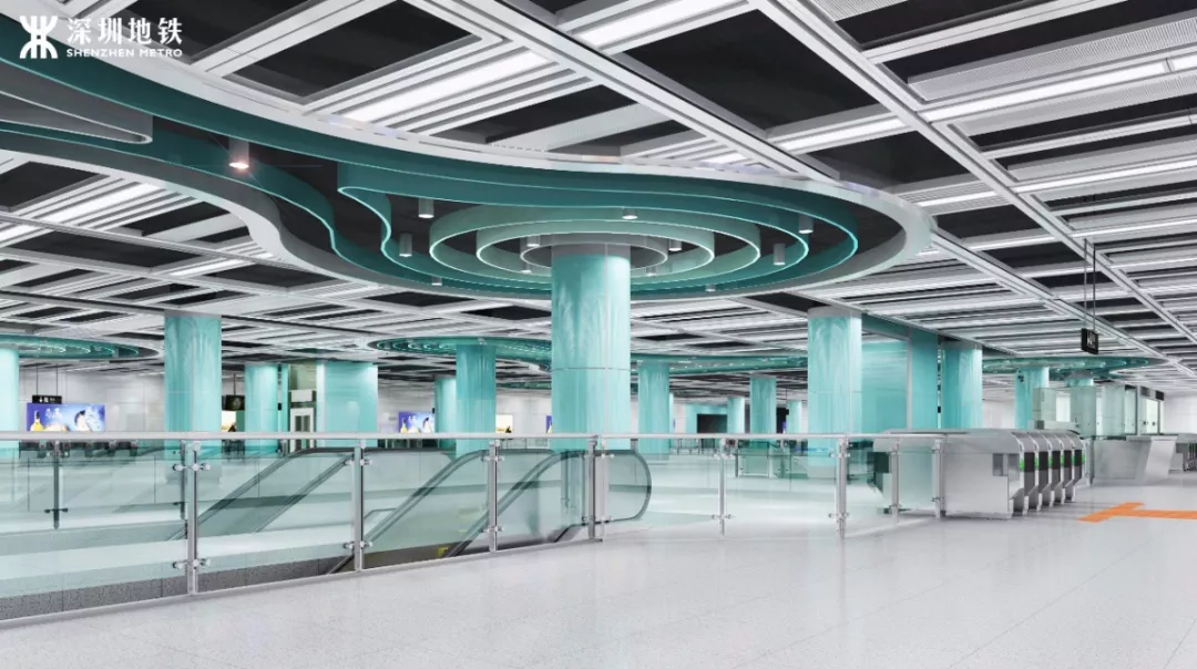 環(huán)環(huán)相扣部位同樣采用了層疊手法,一層一步高,并加以色彩的點(diǎn)綴,逐級(jí)漸變,在統(tǒng)一中求變化,突出亮點(diǎn),打造交通核心視覺(jué)點(diǎn)。