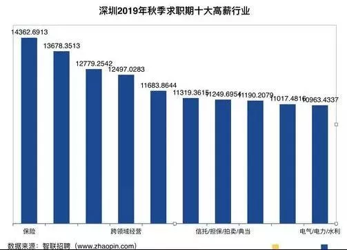 深圳地區(qū)平均薪資排名前十的行業(yè),排名前六位的行業(yè)排名沒(méi)有發(fā)生變化,除保險(xiǎn)和專業(yè)服務(wù)/咨詢行業(yè)的平均薪資水平略有下降,其他四個(gè)行業(yè)的薪酬水平均有所提升;信托/擔(dān)保/拍賣/典當(dāng)和互聯(lián)網(wǎng)/電子商務(wù)行業(yè)的平均薪資水平有所提升,排名均上升一位;學(xué)術(shù)/科研和電氣/電力/水利行業(yè)發(fā)展較快,也進(jìn)入前十榜單。
