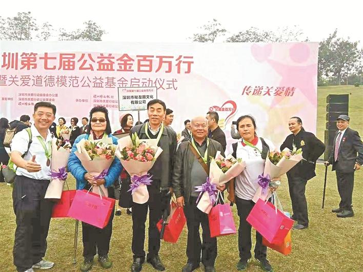 ▲2O18年,吳立民(左四)代表道德模范參加深圳市第七屆公益金百萬行活動(dòng)。受訪者供圖