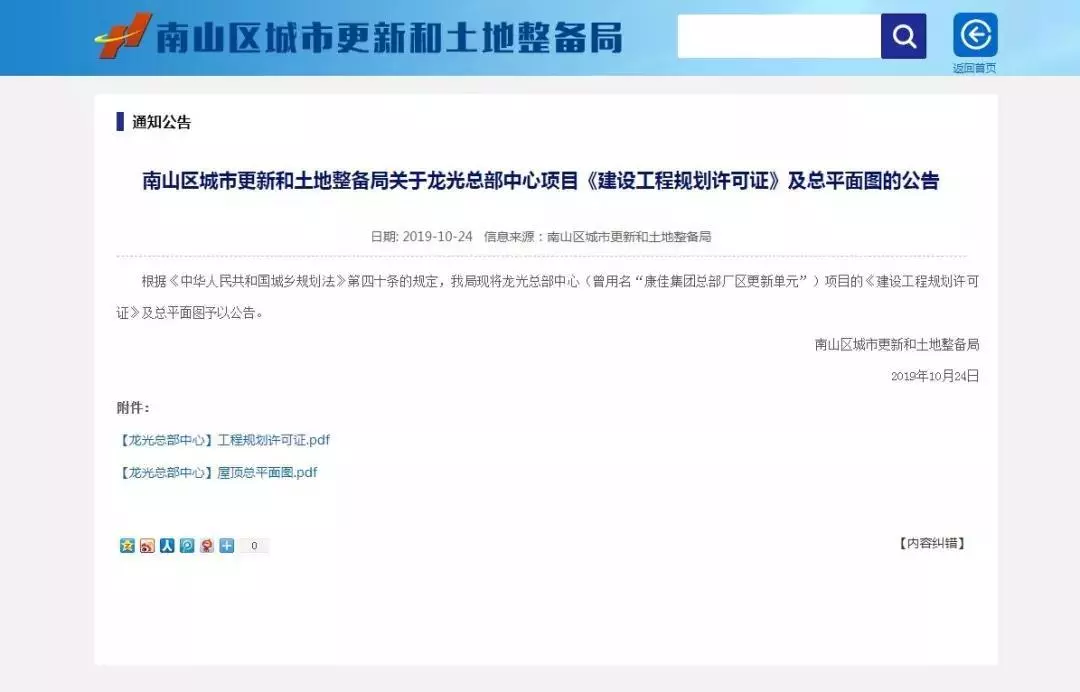 該項(xiàng)目近日已取得政府頒發(fā)的《深圳市建設(shè)工程規(guī)劃許可證》。10月24日,南山區(qū)城市更新和土地整備局發(fā)布的公告披露了這一信息。