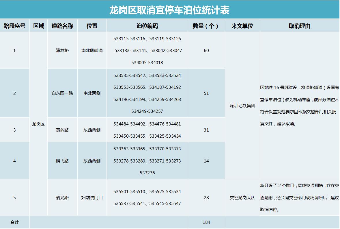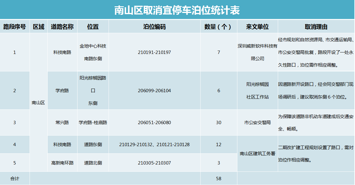 深圳市交通運(yùn)輸局、深圳市公安局交通警察局表示,本次取消上述6個(gè)區(qū)部分宜停車泊位情況公示時(shí)間為2019年10月28日-2019年11月26日。在此期間,如對(duì)上述調(diào)整方案有任何意見或建議,可通過以下方式反饋:
