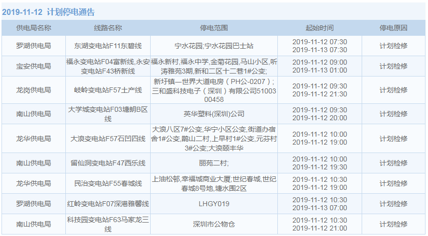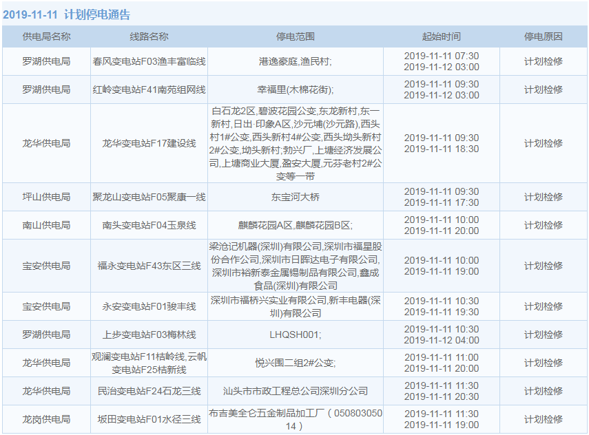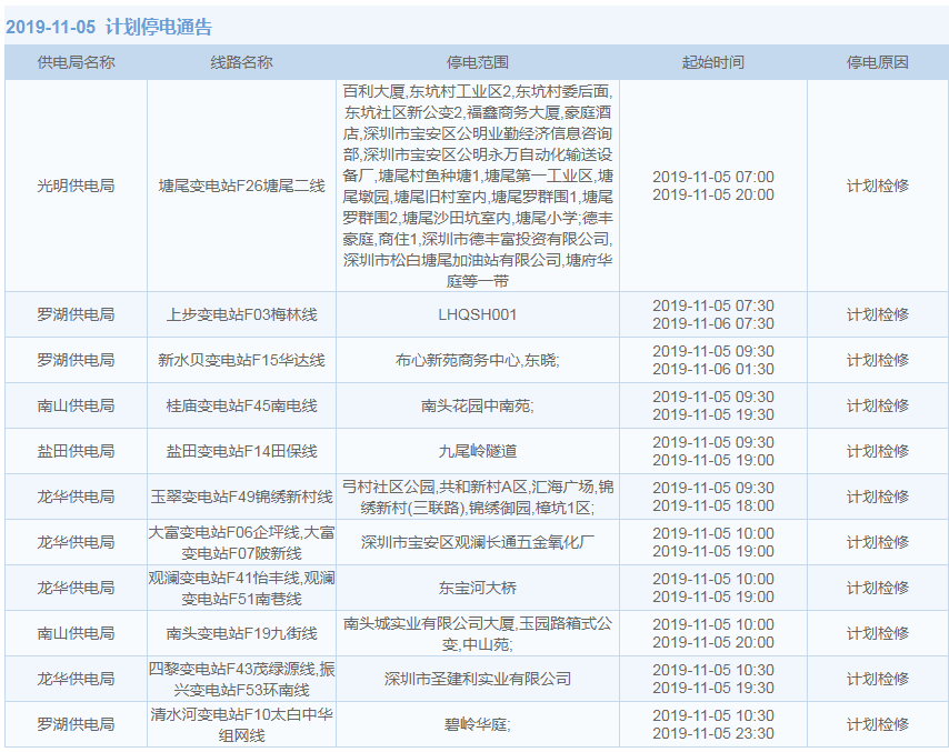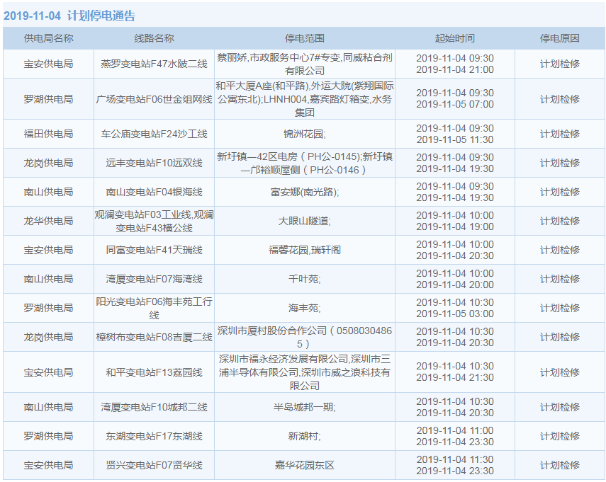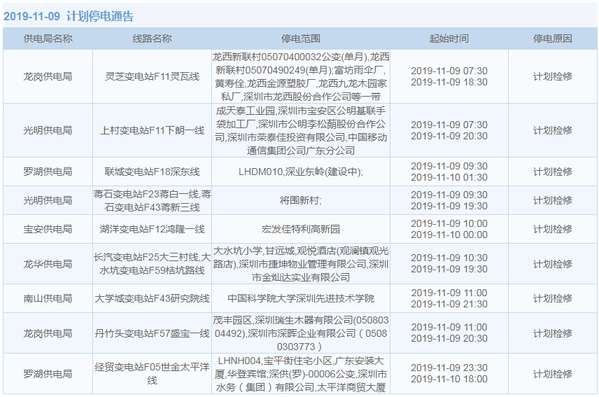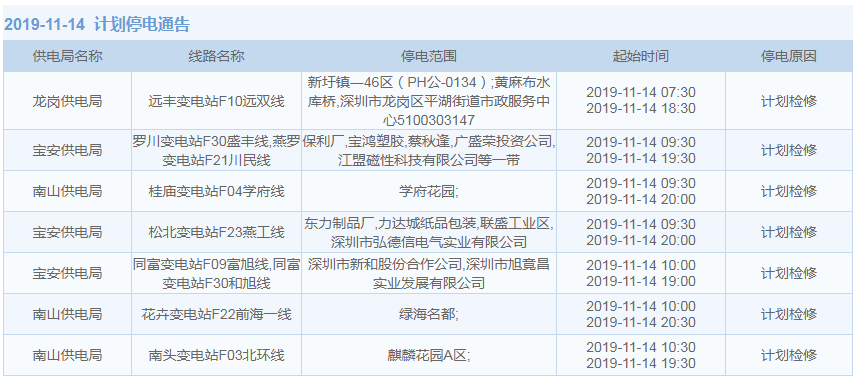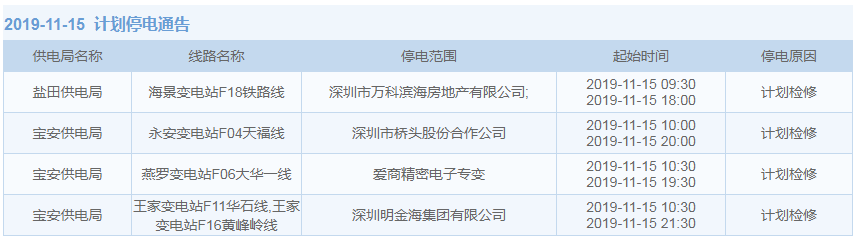 見圳客戶端·深圳新聞網(wǎng)2019年10月29日訊 據(jù)中國南方電網(wǎng)最新消息:11月1日至11月15日,深圳這些地方將停電!快來看看有沒有你家的吧。
