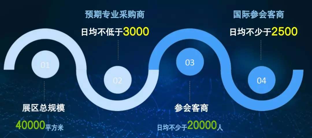 本次首展約有400家重點企業(yè)參展,預期專業(yè)采購商日均不低于3000家,參會客商日均不少于20000人次,其中國際參會客商日均不少于2500人次,將給會展中心帶來巨大的客流量和消費量。