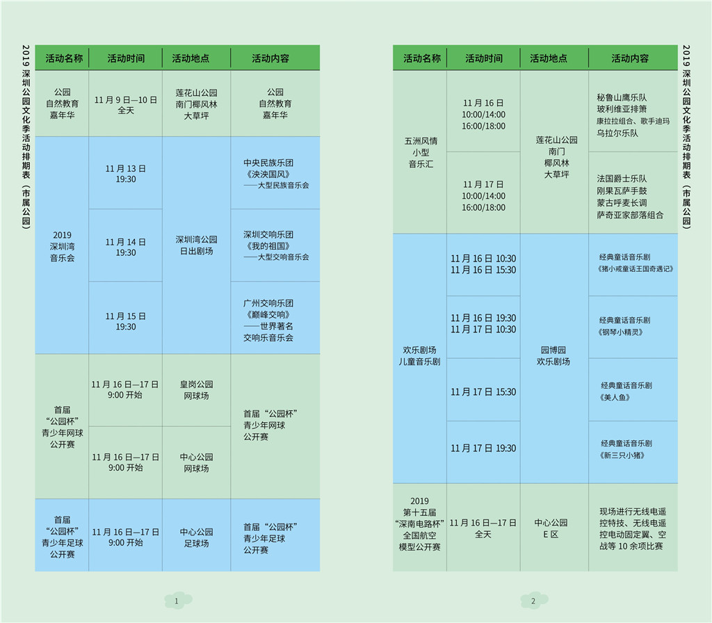 見圳客戶端·深圳新聞網(wǎng)2019年10月30日訊(見圳客戶端、深圳新聞網(wǎng)記者 鐘鴻冰 通訊員 韓躍武)今年9月,深圳提前一年建成“千園之城”,全市公園達(dá)到1090個,成為名副其實的“公園里的城市”。11月,第十四屆深圳公園文化季將正式啟幕,這是成為“千園之城”后的深圳第一場公園文化季,較之往年,又有創(chuàng)新。