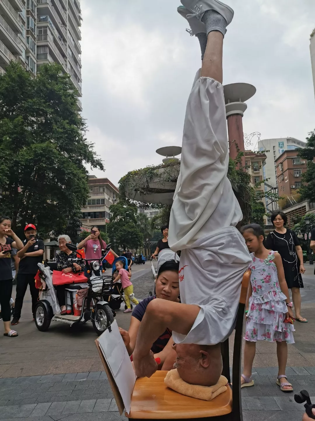 蛇口消息報(bào)2019年11月4日訊 頭著板凳倒立、雙手寫(xiě)字、倒立喝水、倒立吊環(huán),倒立唱歌……做這些高難度動(dòng)作的人居然是一位85歲高齡的老人。