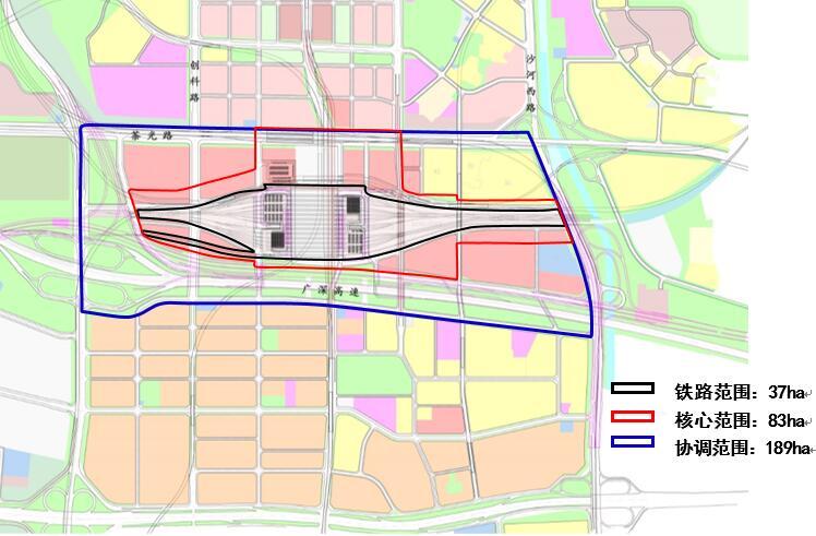 本次方案征集任務(wù)分核心區(qū)和協(xié)調(diào)區(qū)兩個層面。核心區(qū)面積約83ha(下圖紅色線范圍),本次方案征集需完成核心區(qū)范圍的建筑概念設(shè)計;協(xié)調(diào)區(qū)包含核心區(qū),總面積約189ha(下圖藍(lán)色線范圍),本次方案征集需完成協(xié)調(diào)區(qū)范圍的概念性城市設(shè)計;如有必要,可不限于此范圍。