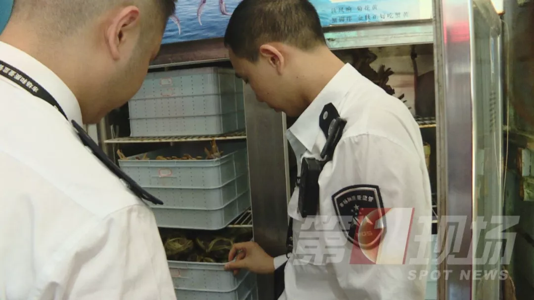 執(zhí)法人員突擊檢查了羅芳水產(chǎn)批發(fā)市場(chǎng)內(nèi)幾間售賣(mài)膏蟹的商鋪,并沒(méi)有在店內(nèi)發(fā)現(xiàn)粗紅繩的蹤影,所有膏蟹以及大閘蟹所捆綁的繩子都是符合規(guī)格的,沒(méi)有吸水和壓秤的現(xiàn)象。