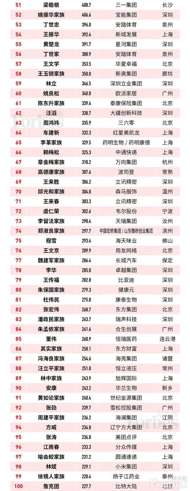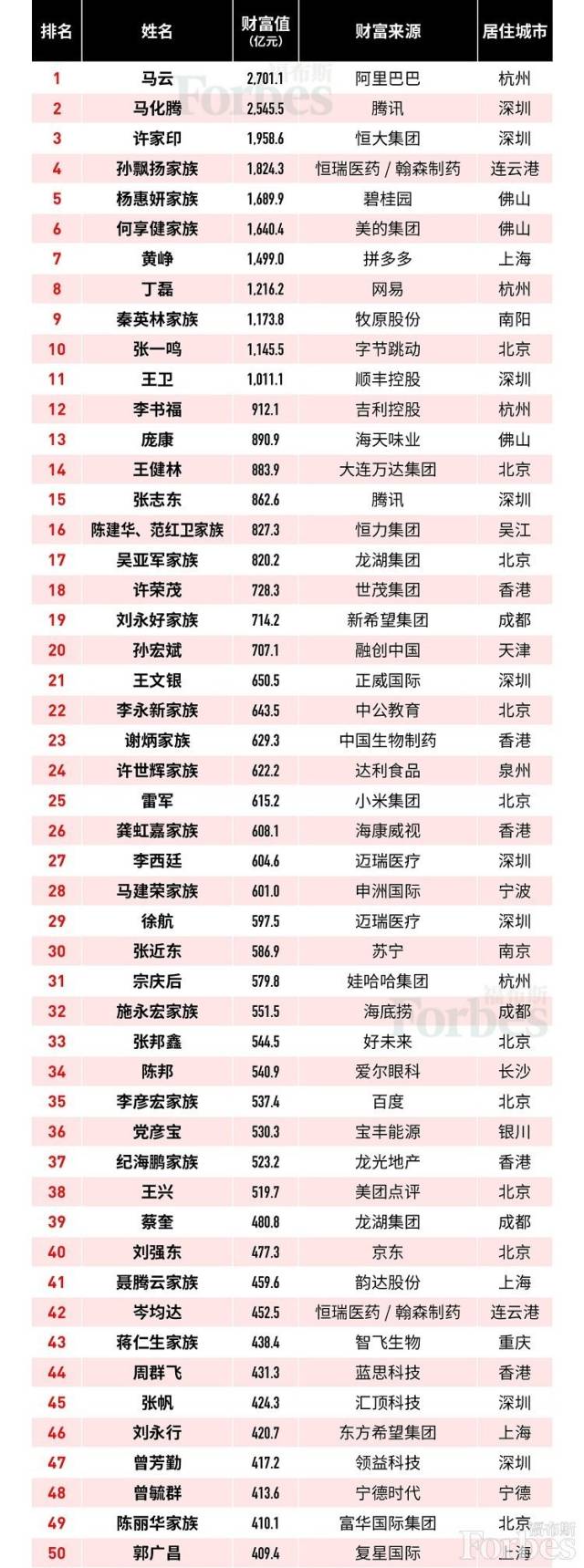 南方網(wǎng)2019年11月7日訊 11月7日,福布斯發(fā)布2019年度中國(guó)富豪榜,400位中國(guó)富豪登上這份頂級(jí)財(cái)富榜單。