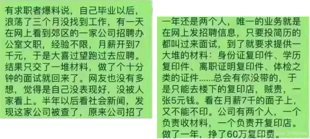 見圳客戶端·深圳新聞網(wǎng)2019年11月7日訊 有個帖子,最近廣為流傳,說是有騙子掛羊頭賣狗肉,打著公司招聘的幌子賺應(yīng)聘者的復(fù)印費,復(fù)印一張5塊錢,竟年入60萬!