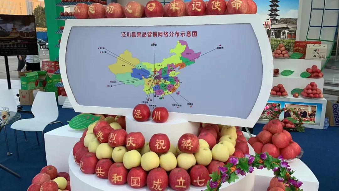 涇川縣的展位,展示了該縣果品營(yíng)銷網(wǎng)絡(luò)分布示意圖。