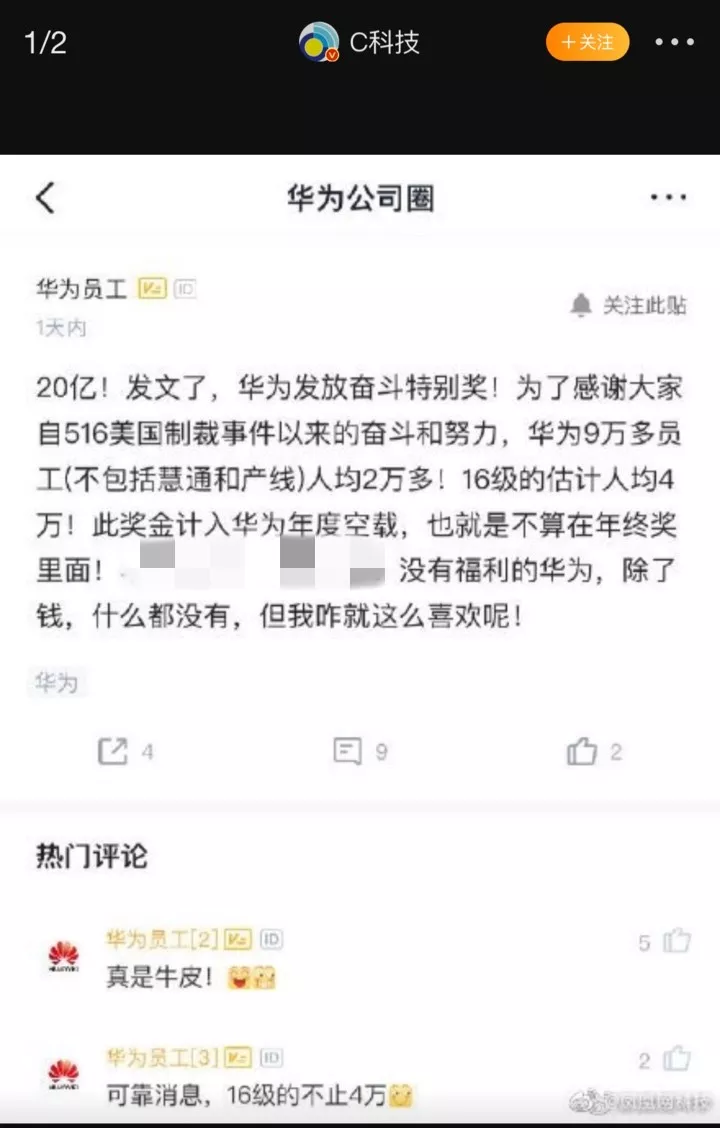 原標(biāo)題:20億?!華為雙11發(fā)獎(jiǎng)金人均10萬(wàn)!男員工立馬給老婆買(mǎi)包包…
