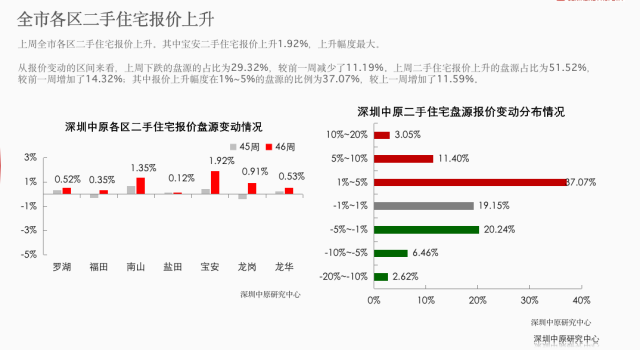 各區(qū)二手住宅報價盤源情況,來自深圳中原研究中心