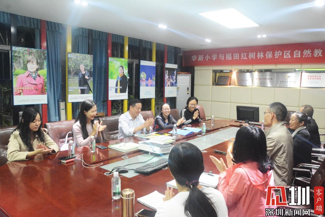 見圳客戶端·深圳新聞網(wǎng)2019年11月22日訊 (見圳客戶端、深圳新聞網(wǎng)記者 曹園芳 通訊員 鄧麗云)11月21日,華新小學與福田紅樹林保護區(qū)自然教育合作簽約儀式在華新小學二樓會議室舉行。與會的有華新小學張偉校長、教導處潘春林主任、課程部鄧麗云主任、美術(shù)科組長胡美莉老師、深圳市觀鳥協(xié)會會員陳苗老師,福田紅樹林保護區(qū)管理局王孟琪副局長、保護區(qū)管理局宣教組兩位負責人胡柳柳與楊瓊、保護區(qū)管理局兩位宣教員石俊慧與陳佳熒。鄧麗云主任和楊瓊博士分別介紹了雙方的課程特色與實踐方案。