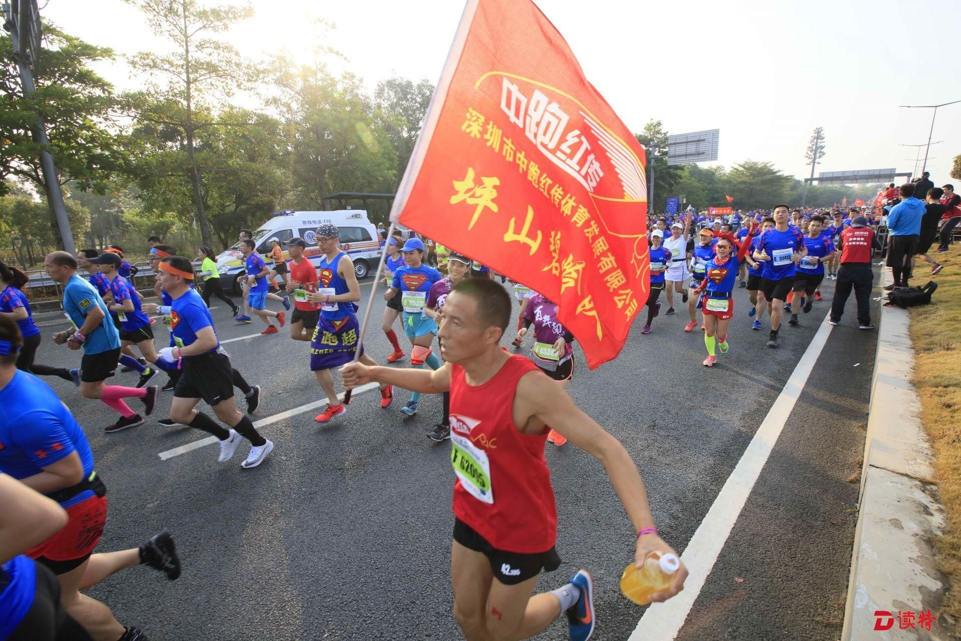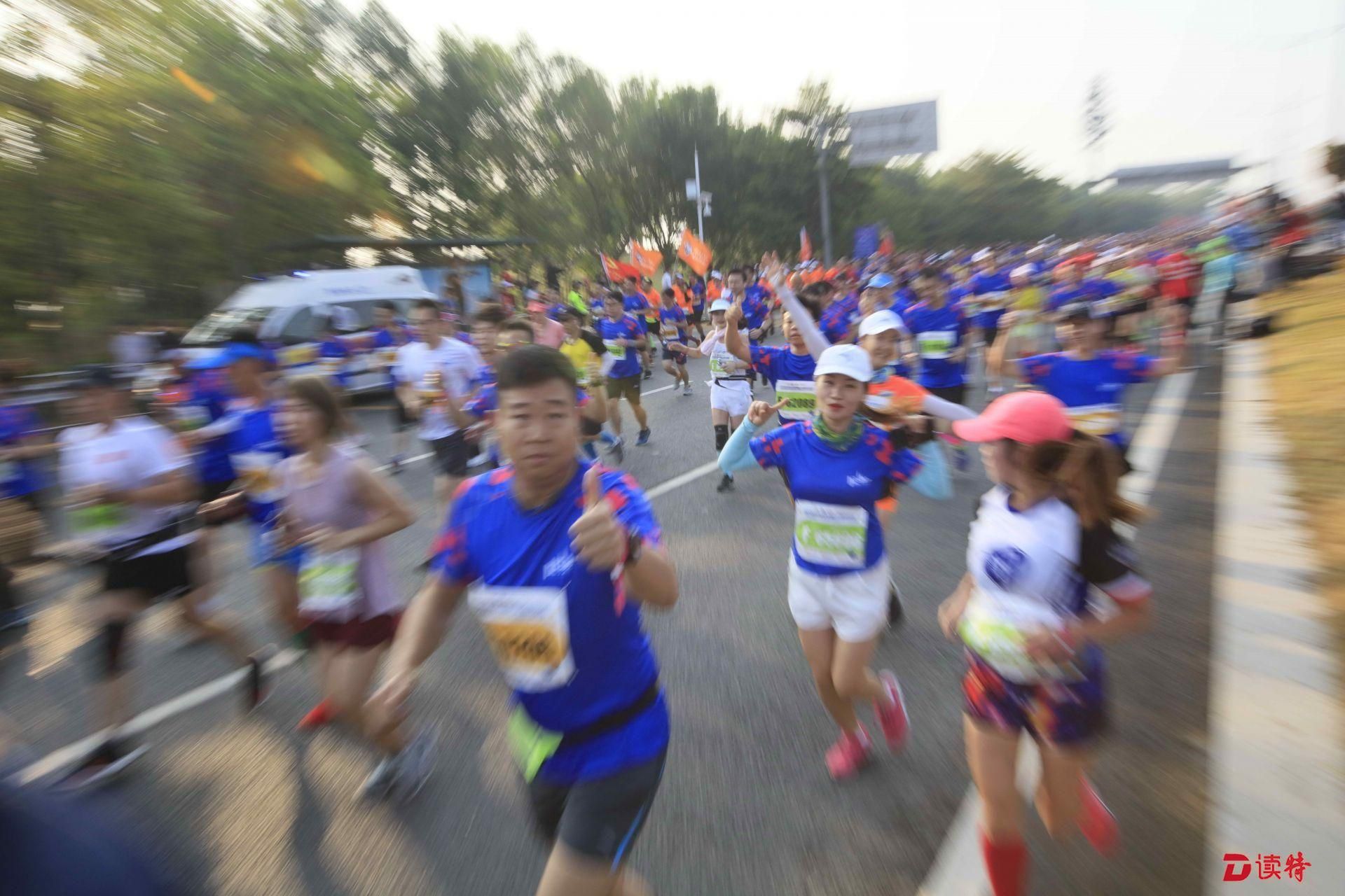 8點(diǎn)鳴槍,1.6萬(wàn)名參賽選手準(zhǔn)時(shí)開跑,由深圳人才公園東門出發(fā),途徑南山區(qū)多個(gè)地標(biāo)建筑,向終點(diǎn)華潤(rùn)深圳灣體育中心奔跑。經(jīng)過(guò)一番激烈的角逐,9點(diǎn)過(guò),有選手率先抵達(dá)終點(diǎn),男女組冠亞季軍陸續(xù)誕生。