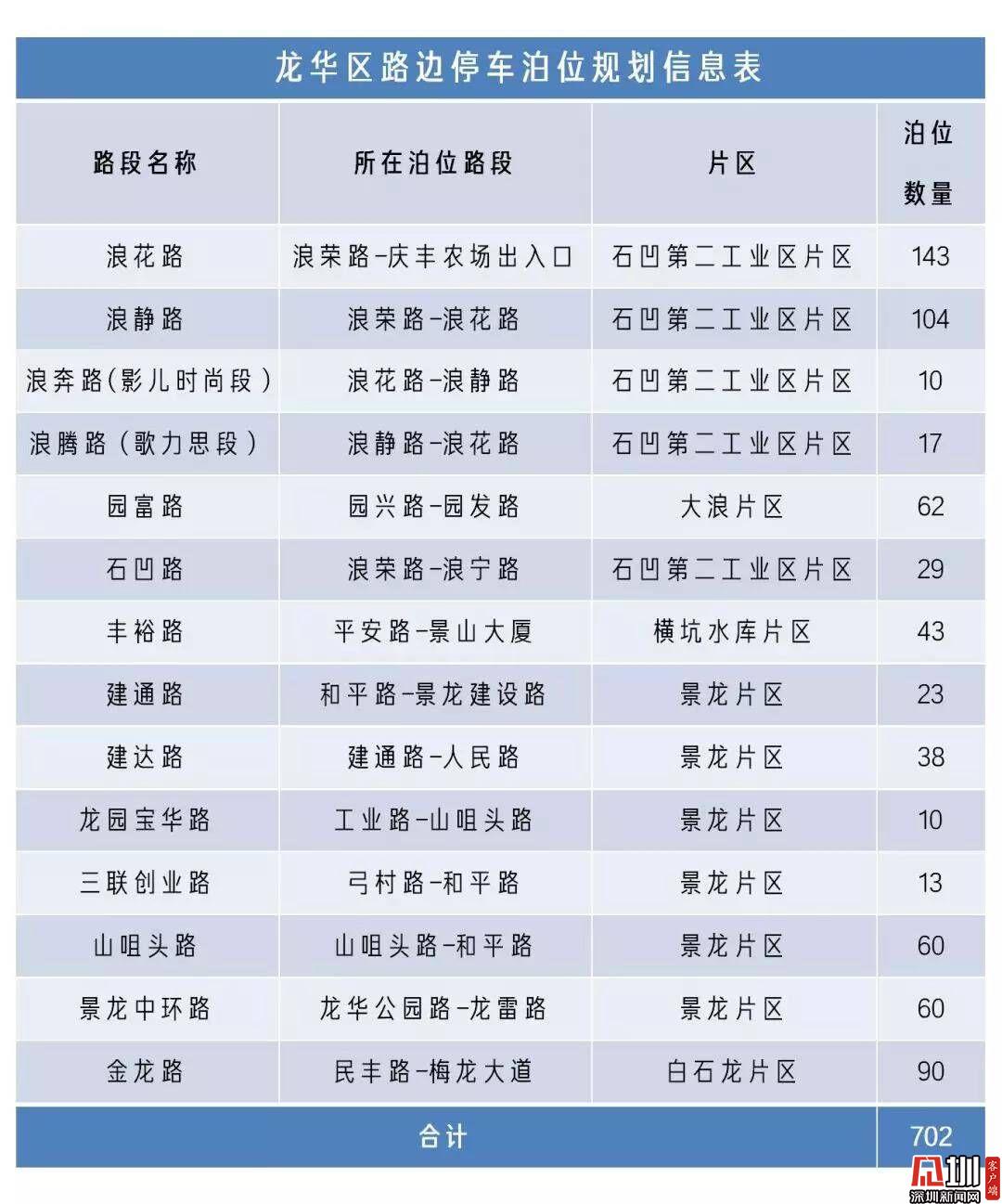 龍華區(qū)路邊宜停車位規(guī)劃信息表。