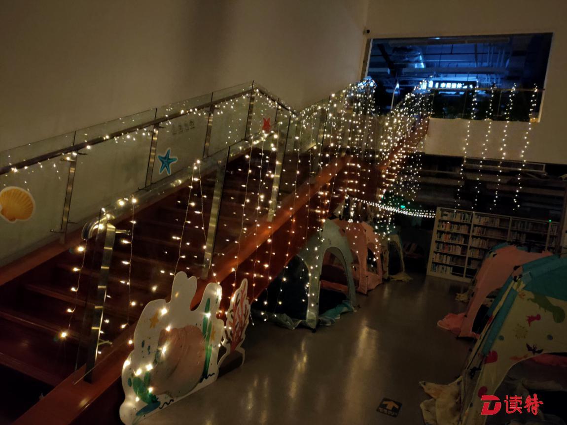 帳篷搭好了,圖書館之夜,夢(mèng)幻童話夜開啟了。
